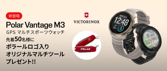 10月24日からの事前予約販売開始に伴って、ポラールのオンラインストアにてVantage M3をご注文いただいたくと、先着50名様へオリジナルノベルティ「ポラールロゴ入りVictorinoxマルチツール」をプレゼントいたします。(なくなり次第終了)