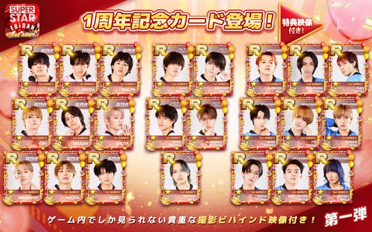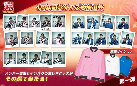 株式会社DalcomSoft Japanは、スターダストプロモーションに所属する超特急やM!LKなど、多数の人気ボーイズグループが所属する若手アーティスト集団・EBiDANの公式リズムゲームアプリ『SUPERSTAR EBiDAN』にて、本日(2024年10月24日)からサービス開始1周年を記念したサイン入りグッズなどがその場で当たる大抽選会を開始したことをお知らせいたします。