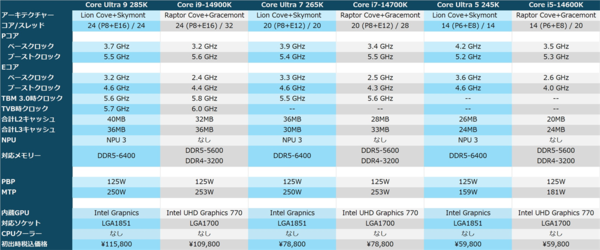 Core Ultra 9 285K/Core Ultra 7 265K/Core Ultra 5 245K速報レビュー!第14世代&Ryzen 9000との比較で実力を見る