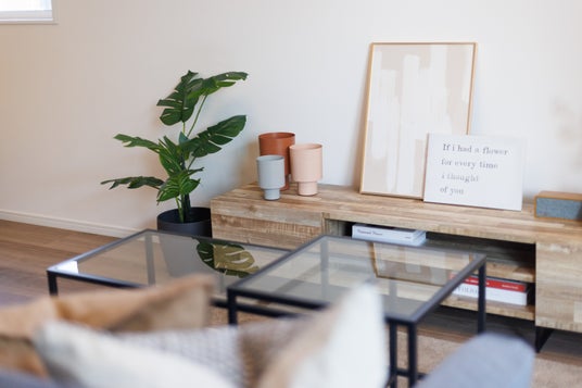 ホームステージング実例(アットインテリア):リビングのテレビボード上やサイドテーブル、リビング収納へデコレーションアイテムをコーディネート