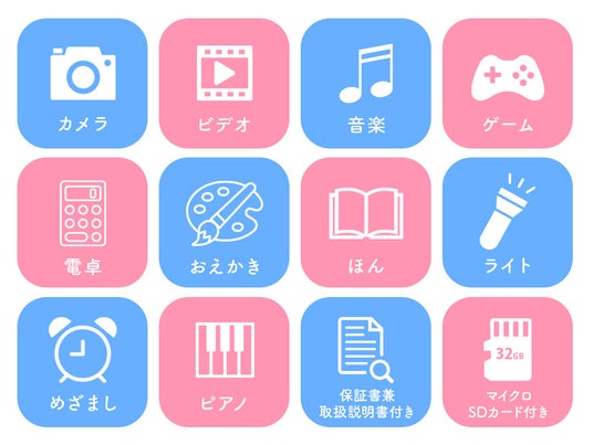 小さなお子さま向けに通信・通話機能は付けずに、カメラやゲームなど22種類の多彩な機能を搭載