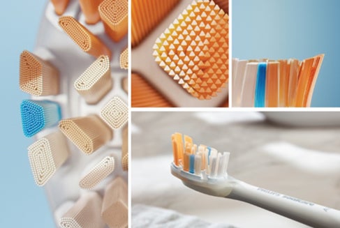 角度のついたアングル毛先で、届きにくい場所でも手磨きの最大 20 倍の歯垢を除去[3]。先端はトライアングルカットになっており、2日間で最大 2 倍のステイン(着色汚れ)を除去[4]でき、長めの毛先が歯と歯ぐきの境い目を洗浄し、約2週間で歯ぐきの健康を推進します[5]。