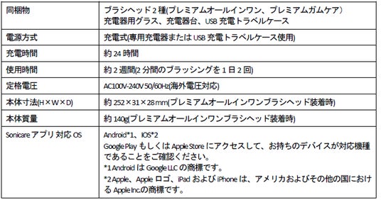 [2] 2011年7月発売時点。電動歯ブラシのグラスを使用した充電器, 電動歯ブラシのUSBトラベルケース型充電器