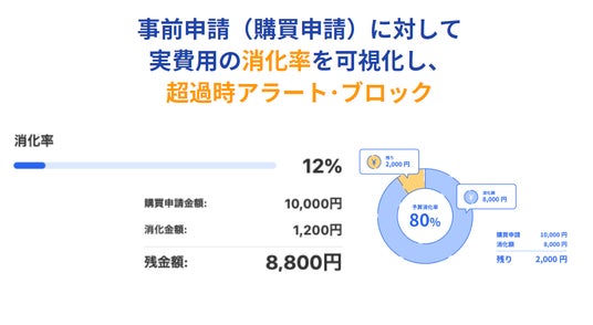 従来、予算を超過した場合は、事前申請(購買申請)の再申請を促すか、事後の申請金額を調整依頼する作業が必要でした。システムが従業員に対して自動で予算超過を警告することで、この催促作業が軽減され、経理担当者と従業員間のCommunication flowを改善します。
