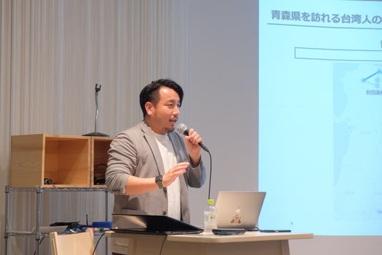 また、Vpon JAPAN株式会社 会田健介氏は、日本の魅力を世界に発信する台湾発の企業として、広告やデータ分析の観点から訪日外国人に対する観光マーケティングについて説明。中でも2024年から増加傾向にある台湾人や、これまで多かった韓国人、それぞれの旅行者に効果のあるプロモーションや、人気のある青森県内の観光スポットの違いについても、分析結果の共有がありました。日本人の価値観で良いと思うものではなく、データを参照したうえで、国外の人々が本当に求めるものは何かを客観的に見ていくことが求められると語りました。