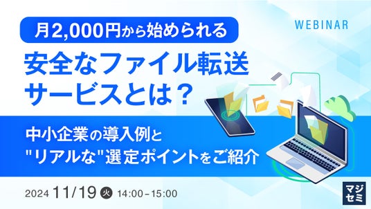 マジセミ株式会社は「月2,000円から始められる、安全なファイル転送サービスとは?」というテーマのウェビナーを開催します。