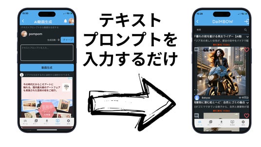 アプリ内で透かしなし、ロゴなしでAI動画生成が可能に!AI動画専用共有アプリケーション「DaiMBOW」に機能追加