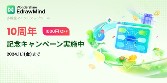 株式会社ワンダーシェアーソフトウェア(東京都港区、代表:呉太兵)が提供する、ソフトウェア「EdrawMind(エドラマインド)」が10周年を迎えました。