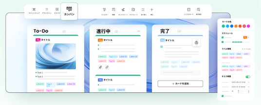 1.カンバン機能 リアルタイムなコラボレーション機能で、タスクの進行状況を随時把握し、よりチームワークを見える化し、作業効率を強化