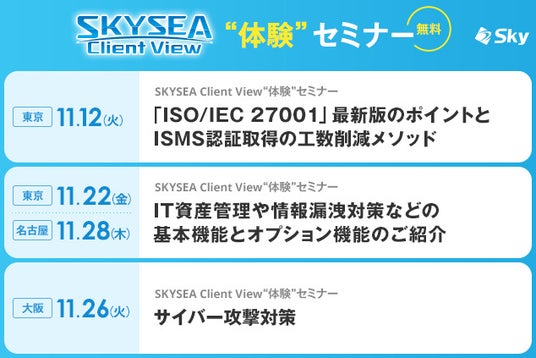 「SKYSEA Client View」 11月開催ハンズオンセミナー(東京・大阪・名古屋)