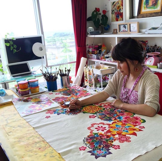 現在、沖縄(読谷村)を製作拠点とする新進気鋭の紅型作家として世界から注目されている。