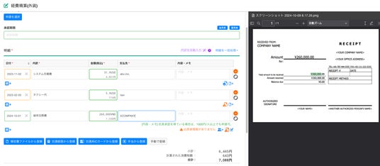 海外出張等の経費精算を行う際に、 外貨の領収書を登録すると、対応している35通貨についてAI-OCRが金額と通貨を読み取り、値を自動で入力します。
