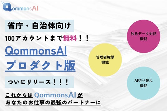省庁・自治体から大絶賛の「QommonsAI」ついにプロダクト版リリース!自治体業務を革新する生成AIの力で、効率化と住民サービス向上を加速!!