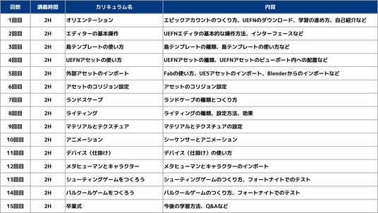〇フォートナイトゲーム制作コース<ベーシック>のカリキュラム内容