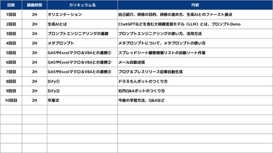 〇生成AIウェブシステム制作コースのカリキュラム内容