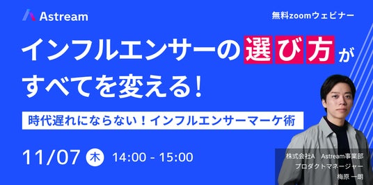 株式会社A(https://acetokyo.com/)は、マーケティングご担当者様に向けて、「インフルエンサーの"選び方"がすべてを変える! 時代遅れにならない!インフルエンサーマーケ術」と題した無料ウェビナーを、11月7日(木)14:00~15:00にオンラインで開催します。