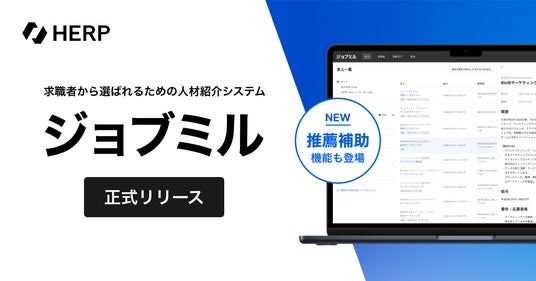 株式会社HERP(本社:東京都品川区、代表取締役:庄田一郎)は、人材紹介会社向け求人管理システム『ジョブミル』β版( https://www.jobmiru.cloud/ )の提供開始から一年を迎え、人材紹介システム『ジョブミル』正式版として提供を開始したことをお知らせします。