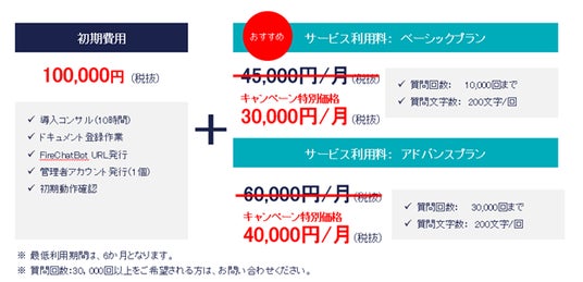 FireChatBotの料金体系は、初期費用と月額サービス利用料から構成されています。