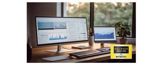 本製品は、ウルトラワイドモニターUWQHD (3440×1440)での動作を確認しています。ウルトラワイドモニターは1台で広々と使えるため、作業の効率化、デスクの省スペース化にもおすすめです。