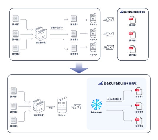 2024年10月18日に同機能をリリースした「バクラク申請」に続き、「バクラク請求書受取」でも、紙で受領した請求書をまとめて複合機などでスキャンする際、請求書単位に書類を仕分け、作業を行う必要がなくなります。