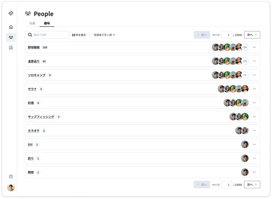 今回、全社横断のコラボレーションをさらに促進するために、全社員の趣味を一覧表示で可視化するアップデートを行いました。これにより、共通の趣味を見つけやすくなることや、それをきっかけに生み出される部署横断のコラボレーションを実現することができます。