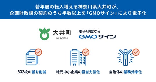 若年層の転入増える神奈川県大井町が、企画財政課の契約のうち半数以上を「GMOサイン」により電子化【GMOグローバルサイン・HD】