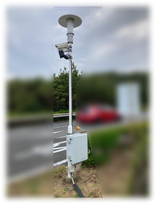 【写真】国営公園周辺に設置されたAI車番認識カメラ。