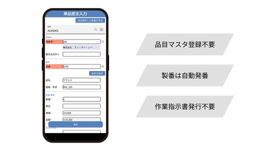 品目マスタなしの運用が可能で、製品の種類が増えてもマスタ登録の手間がかかりません。