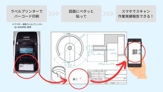 印刷したバーコードを図面に貼っておいて、スマホでスキャン!