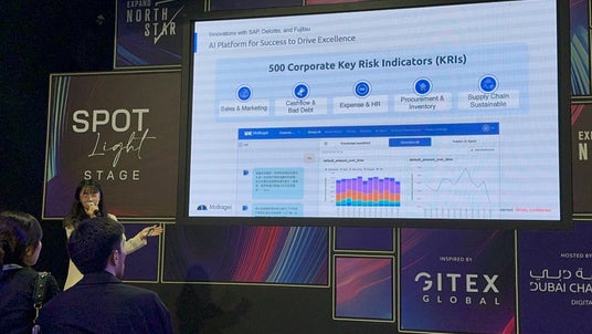 こうした機会を見据え、MoBagelはドバイを次なるグローバル市場として選定しました。GITEXにおいて、MoBagelは最新の金融分析AIプラットフォーム「Design AI」とAI金融アシスタント「Hyper-Agent」を展示しました(図1参照)。このプラットフォームは、営業管理、調達管理、在庫管理、運転資本管理、経費管理、情報セキュリティの6つの重要な領域において、500を超える金融リスク管理指標の確立を支援します。また、AI金融アシスタントにより、リアルタイムの可視化レポートや異常のモニタリング、リスクの警告も提供されます。
