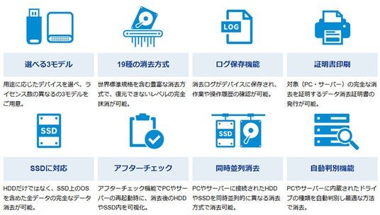世界標準規格8消去を含む、消去方式を19種類搭載