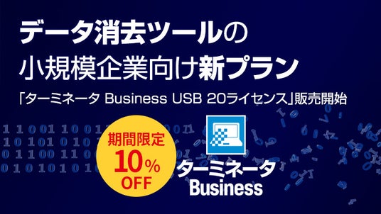 「ターミネータ Business USB 20ライセンス」が期間限定で【10%割引】となりますので、この機会にぜひ購入を検討ください。ストア会員登録後に購入いただければ、ポイントと会員割引が適用されて更にお得です。