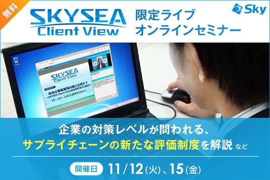Sky株式会社は、クライアント運用管理ソフトウェア「SKYSEA Client View」を活用した情報漏洩対策やIT資産管理などについてご紹介する「SKYSEA Client View 限定ライブ オンラインセミナー」(受講費無料)を随時開催しています。