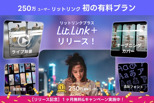 コミュニケーションテック事業の運営をするTieUps株式会社(本社:東京都渋谷区、代表取締役:小原 史啓)は、プロフィールページ作成ツール「lit.link」において、新たな有料プラン「lit.link+」(以下、リットリンクプラス)を2024年10月30日(水)より提供開始します。これにより、ユーザーはよりカスタマイズ性の高い、リッチなプロフィールページを作成することが可能になります。