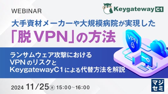 本セミナーでは、ゼロトラスト接続サービス「KeygatewayC1」を活用して実際に「脱VPN」を実現している事例をご紹介します。
