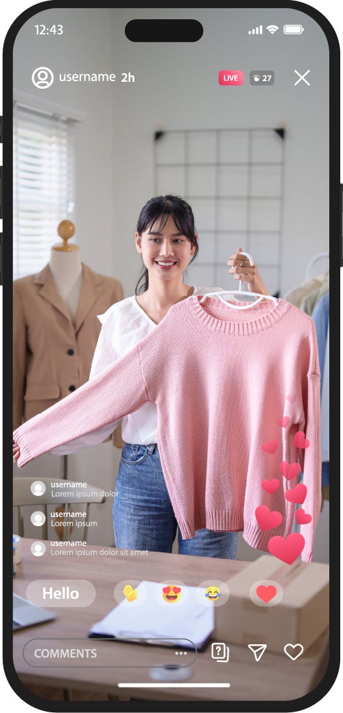 ショート動画やライブ配信を見ながらショッピングできる体験をアプリで提供するサービス。
