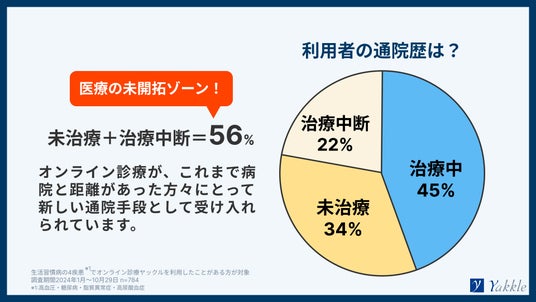 生活習慣病の重症化予防に新たな一手、 オンライン保険診療利用者の56%が未通院患者【オンライン保険診療ヤックル】