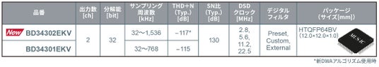 MUS-IC(TM)シリーズ オーディオDACチップ第2世代品「BD34302EKV」