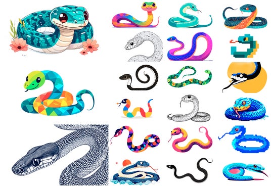 本製品は2025年の干支、巳年(へび)の年賀状に使えるイラストを収録した素材集です。