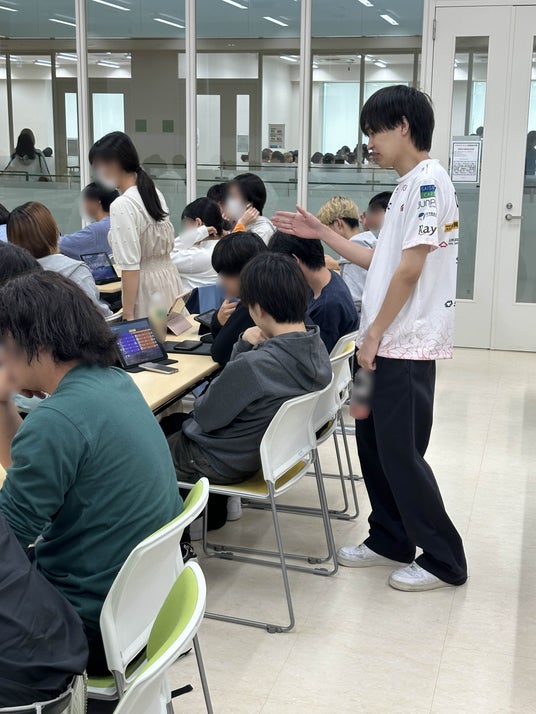 ゲームの実施については、5名1チームに分かれ、戦略や試合中の連携など自身の役割を理解し コミュニケーションを重ねることでチームが1つになり、ゴールに向かうということを体感いただけたのではないかと思います。さらに、講義内で実施されたグループディスカッションでは、eスポーツを活用した社会課題解決について活発な意見交換も行われました。