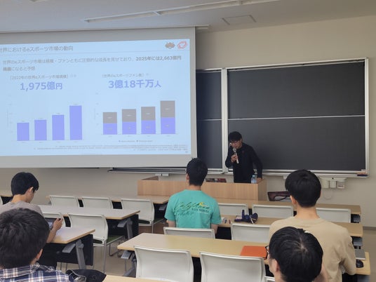 特別講義には100人以上の学生の皆様が参加され、eスポーツに関する知識や地域活性化などの事例に加え、ゲームを通して、PDCAサイクルにおける「計画」「実行」「評価」「改善」を体感頂き、チームビルディングを学んでいただきました。