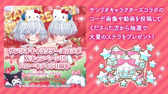 サンリオキャラクターズと『ペアリウム』のドリームアニバーサリーコラボガチャ!
