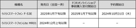株式会社NTTドコモ(以下、ドコモ)は、らくらくタッチパネル対応のディスプレイと光学手ブレ補正付き5030万画素カメラを搭載した「らくらくスマートフォン F-53E」を2025年1月下旬以降に発売いたします。また、大画面で使いやすく、電池長持ちと長寿命を実現する大容量バッテリーを搭載した「らくらくスマートフォンLite MR01」(SIMフリーモデル)を2024年12月上旬以降に発売いたします。