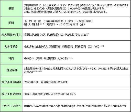 なお、「らくらくスマートフォン F-53E」の予約開始・発売に併せたキャンペーンを開催いたします。キャンペーンの詳細は 別紙をご確認ください。