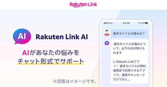 楽天モバイルでは、「Rakuten Link」アプリを通して様々な場面でのコミュニケーションをサポートしてまいりました。今後も、より多くのお客様にコミュニケーションを快適にお楽しみいただくとともに、楽天グループのサービスを手軽にご利用いただけるよう、「Rakuten AI」を活用したサービスや追加機能の拡充に努めてまいります。