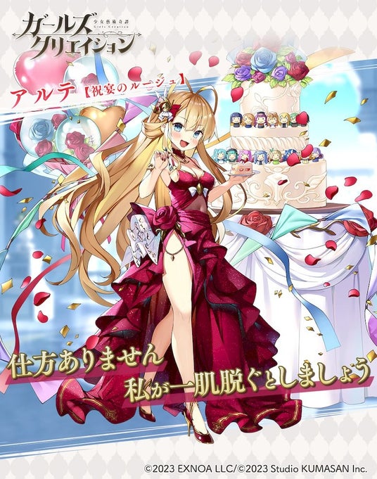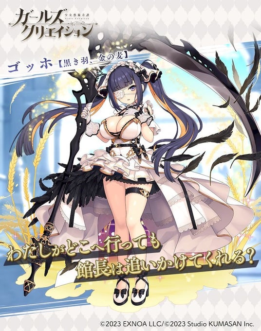 合同会社EXNOA(本社:東京都港区、CEO:村中 悠介、URL:https://games.dmm.com/)が運営するDMM GAMESにおいて、「クリエイティブチーム くまさん」第4弾作品となる『ガールズクリエイション -少女藝術綺譚-』(以下、『ガールズクリエイション』)にて、「1stアニバーサリーキャンペーン」とイベント「親愛なる館長へ」を開催いたしました。また、アルテ★5スタイル【祝宴のルージュ】とゴッホ★5スタイル【黒き羽、金の麦】が新登場のピックアップガチャの開催や新コンテンツ「インスピレーション」および「リサーチクエスト」の追加もお知らせいたします。