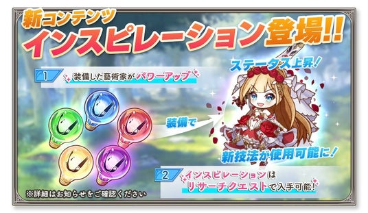 インスピレーションは新登場のバトルコンテンツ「リサーチクエスト」にて獲得できます。