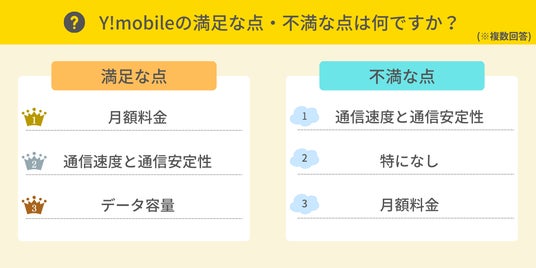 Y!mobileを利用している方を対象に、利用して満足度が高かった点と、不満に感じた点を調査しました。