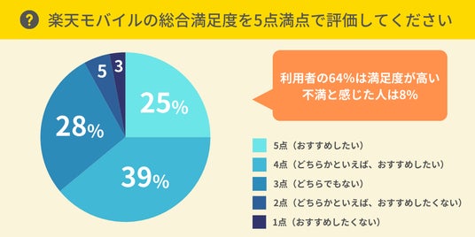 ・楽天モバイル利用者の64%は満足度が高い。不満に感じている方の割合は8%