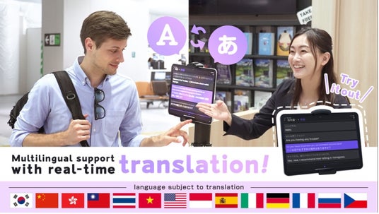 現在Felo瞬訳は、福岡県の「AIを活用した外国人旅行者の旅行動向分析事業」で導入するAIを搭載した音声翻訳機のアプリとして、選定されました。これにより、福岡空港国際線および博多駅の観光案内所にQTnetの翻訳デバイスが設置され、「Felo瞬訳」がアプリとして利用されています。